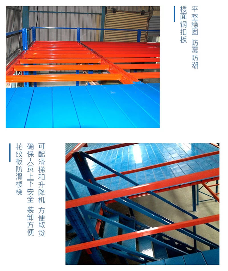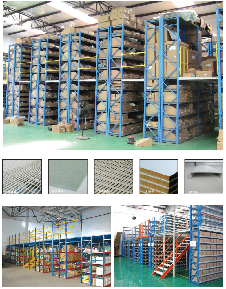 閣樓式貨架面板有平板、花紋鋼板、沖孔鋼板等品種以適應(yīng)防火、通風、光照等等不同使用要求。貨物上下樓層可選擇叉車、液壓升降臺、貨梯等方式;貨物同層運輸通常使用小型手推車完成。