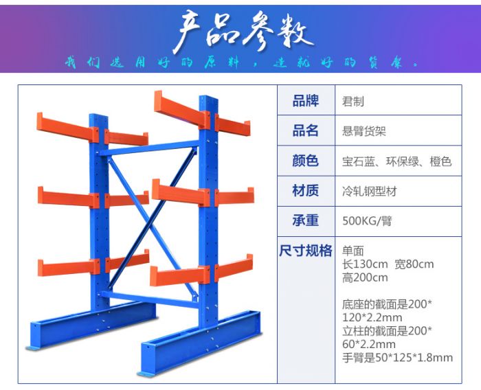 1、懸臂貨架系列全部采用組合式,拆裝,運輸,調(diào)節(jié),移動等簡易方便,安全可靠