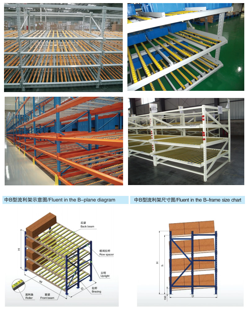 流利式貨架廣泛應(yīng)用于制造業(yè),商業(yè),配送中心,裝配車間以及出貨頻率較高的倉(cāng)庫(kù)流利式貨架:采用輥輪鋁合金,鈑金等流利條,利用臺(tái)架自重實(shí)現(xiàn)先進(jìn)先出,存儲(chǔ)方便,適用于裝配線兩側(cè)配送中心等場(chǎng)所。
